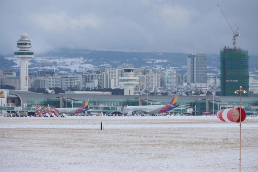 Đại diện đơn vị vận hành sân bay cho biết các hoạt động tại đường băng bị tạm ngưng đến 11h sáng 9/2 do thời tiết khắc nghiệt. Trong 461 chuyến bay theo kế hoạch, có 163 chuyến đi và đến bị hủy, 5 máy bay phải chuyển hướng hạ cánh. Sự cố này khiến hàng nghìn du khách tại đảo nghỉ dưỡng miền nam Hàn Quốc rơi vào tình trạng bị động.