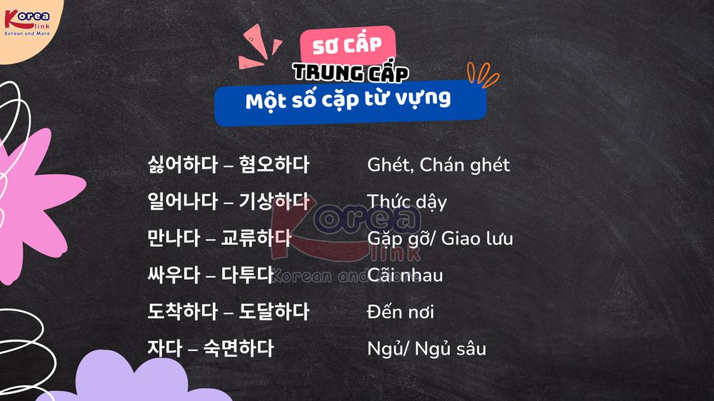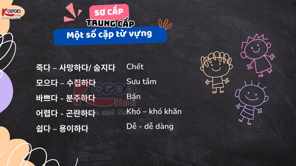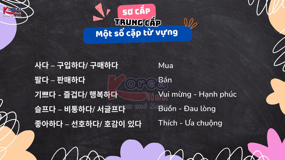 Tiếp nối phần 1, thì chúng ta sẽ tìm hiểu thêm một số cặp từ vựng Sơ cấp – Trung Cấp ở phần 2 này nhé.