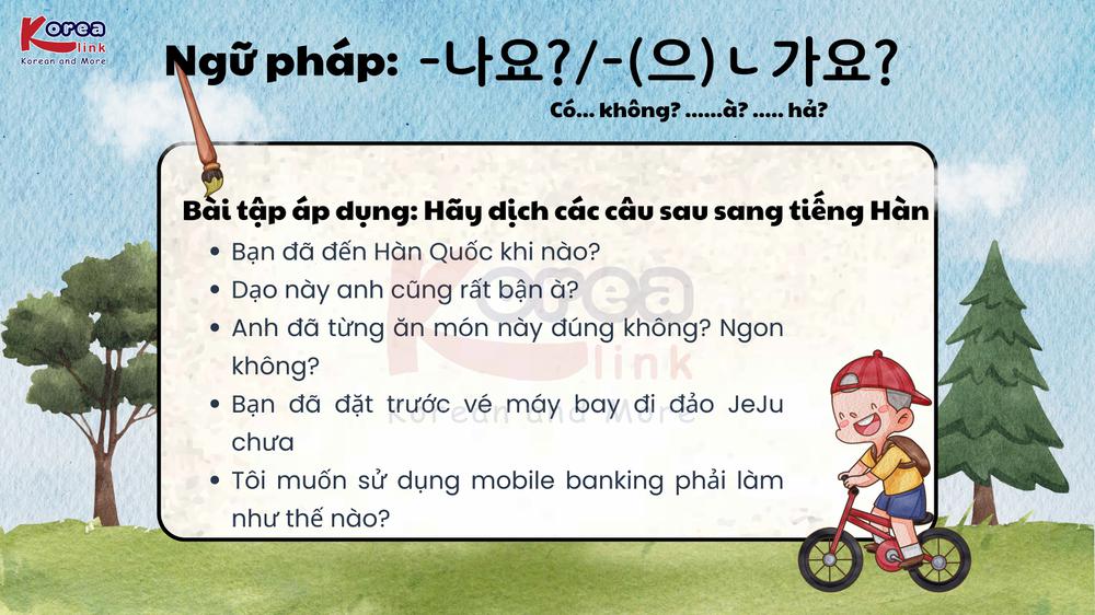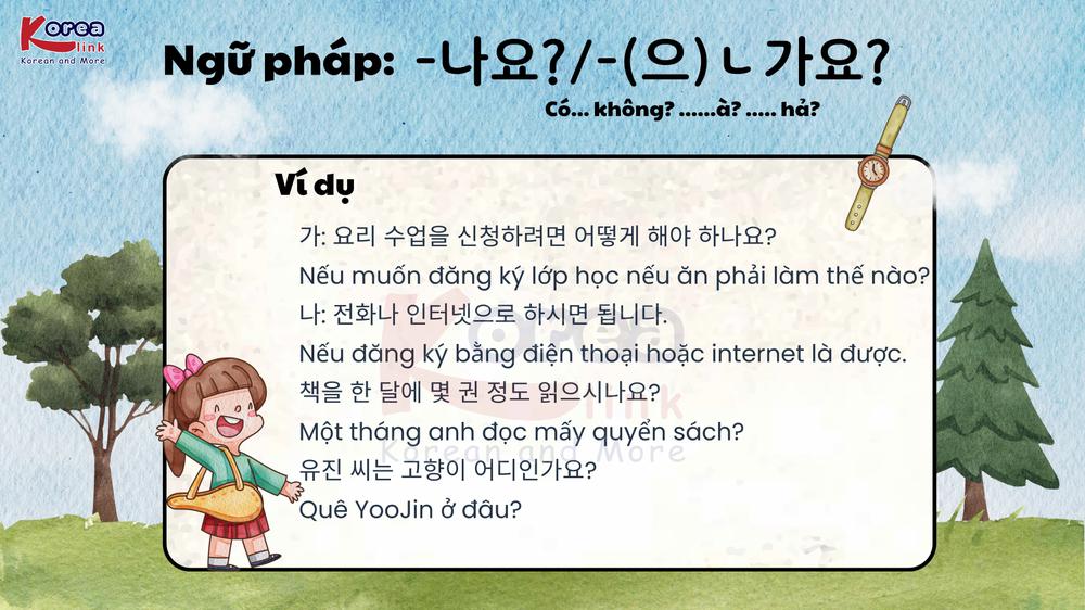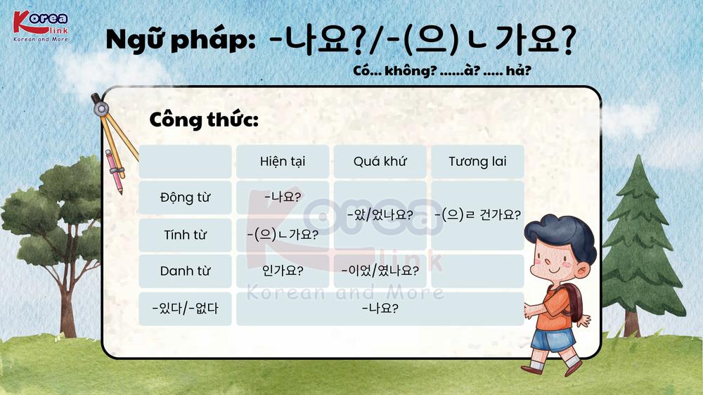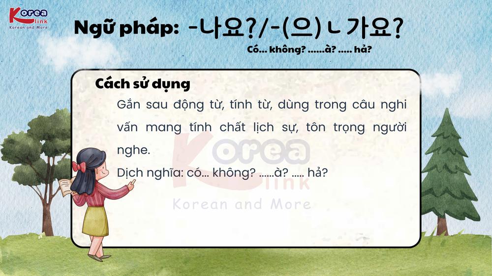 Khi muốn hỏi điều gì đó bằng tiếng Hàn nhưng vẫn giữ sự lịch sự và nhẹ nhàng, người Hàn thường dùng -나요?/-(으)ㄴ가요?. Đây là cách hỏi vừa tự nhiên vừa tôn trọng người nghe. Hãy cùng Korea Link khám phá cấu trúc này nhé!