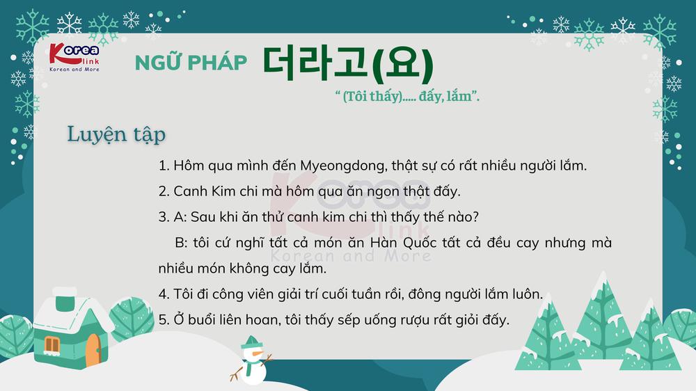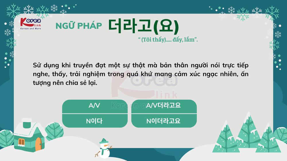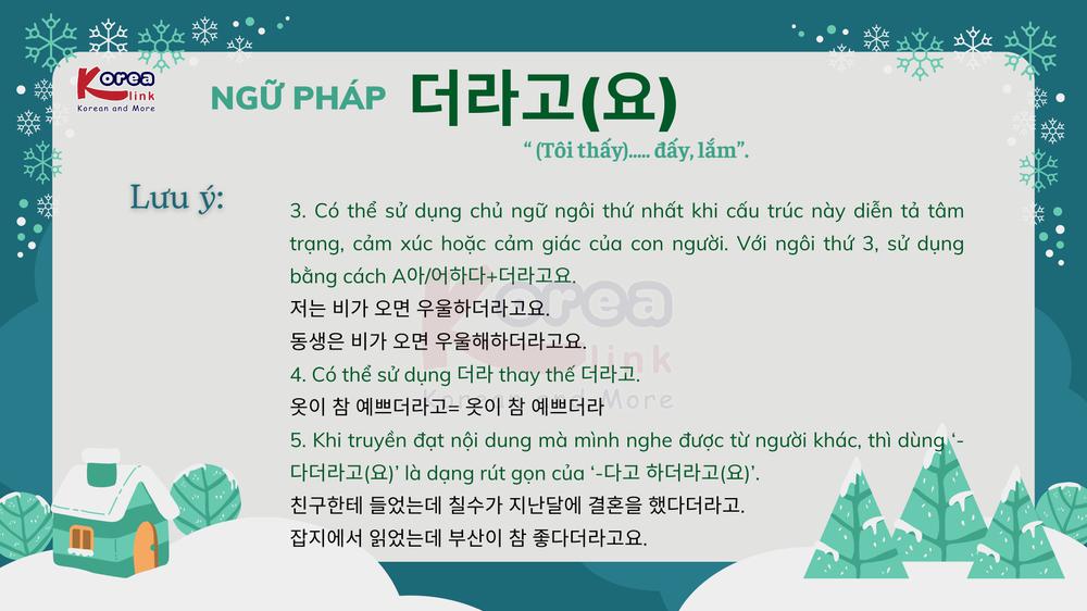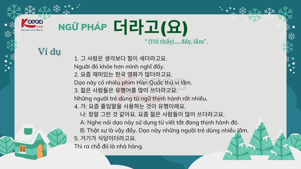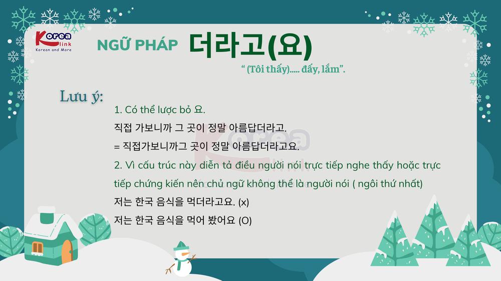 Bài viết này sẽ giúp bạn hiểu rõ ý nghĩa, sắc thái và cách sử dụng 더라고(요) một cách chuẩn xác, kèm theo ví dụ thực tế để bạn áp dụng ngay trong giao tiếp hằng ngày. Nếu bạn muốn nói tiếng Hàn tự nhiên và giàu cảm xúc hơn, hãy bắt đầu từ ngữ pháp quan trọng này!