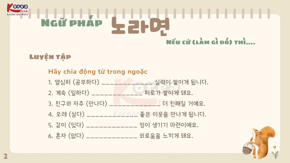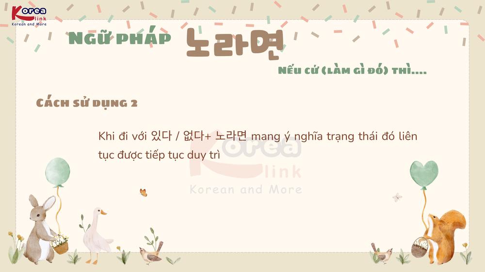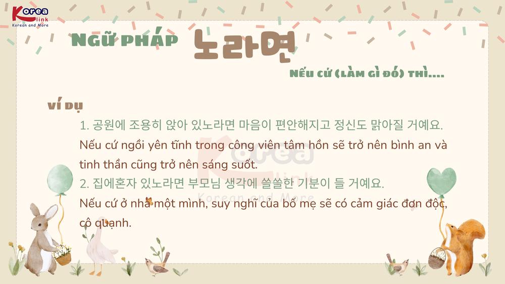 Khi học tiếng Hàn, bạn sẽ bắt gặp những cấu trúc dùng để diễn tả kết quả xảy ra nếu tiếp tục duy trì một hành động nào đó , và trong số đó, ngữ pháp “ 노라면” là dạng biểu hiện rất quan trọng. Đây là cấu trúc thường dùng trong văn nói và văn viết để chỉ hệ quả tự nhiên , tương tự như “nếu cứ … thì sẽ …” trong tiếng Việt. Bài viết này sẽ giúp bạn hiểu rõ 노라면 là gì, cách dùng, ý nghĩa , đồng thời cung cấp ví dụ thực tế giúp bạn dễ nhớ, dễ áp dụng và chuẩn bị tốt cho các kỳ thi TOPIK.