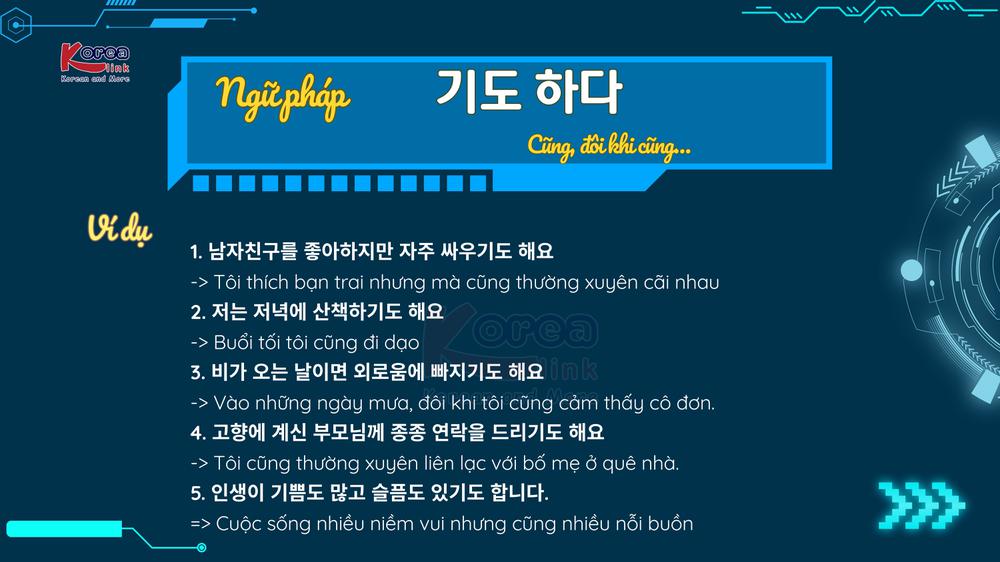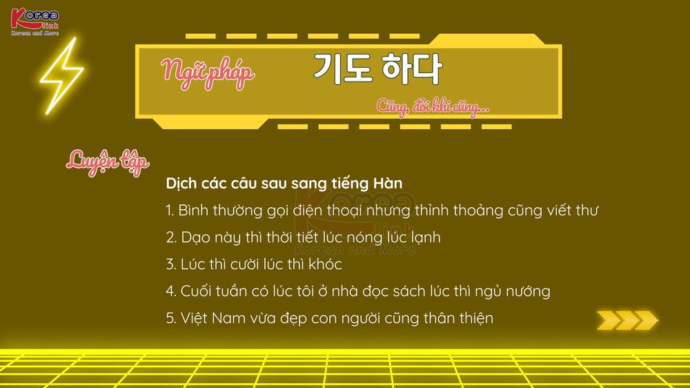 Trong giao tiếp tiếng Hàn, bạn sẽ thường bắt gặp cấu trúc V-기도 하다, một ngữ pháp quan trọng dùng để bổ sung thông tin hoặc nhấn mạnh sự đa dạng của hành động. Cấu trúc này mang nhiều sắc thái như “cũng…”, “có lúc thì…”, “thỉnh thoảng cũng…”, giúp câu nói tự nhiên và linh hoạt hơn, giống cách người Hàn sử dụng trong đời sống hàng ngày. Ngữ pháp V-기도 하다 xuất hiện nhiều trong hội thoại, sách giáo trình và bài thi TOPIK, nên nắm vững cách dùng sẽ giúp bạn diễn đạt phong phú, tự nhiên và chính xác hơn.