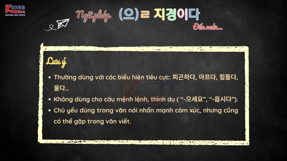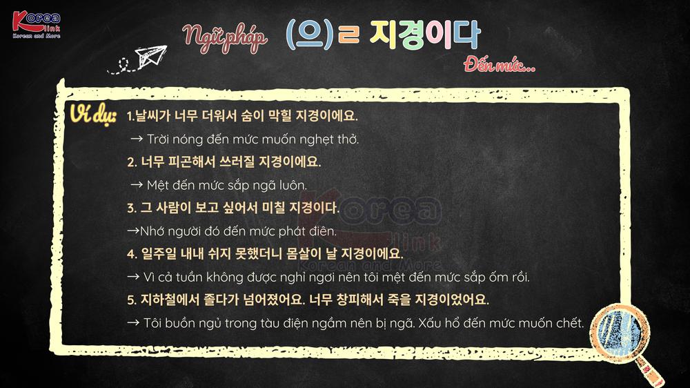 Ngữ pháp tiếng Hàn ( 으) ㄹ 지경이다 là một cấu trúc thường gặp trong văn viết và giao tiếp học thuật, dùng để diễn tả mức độ nghiêm trọng, căng thẳng hoặc cực hạn của một trạng thái, sự việc – đến mức “sắp”, “gần như” xảy ra điều gì đó. Khi sử dụng ( 으) ㄹ 지경이다 , người học có thể truyền tải cảm xúc mạnh mẽ như lo lắng, mệt mỏi, hoảng sợ hay áp lực cao độ một cách tự nhiên và giàu sắc thái.
