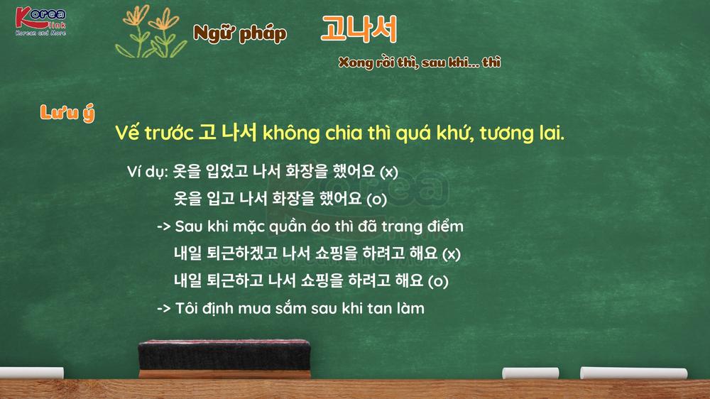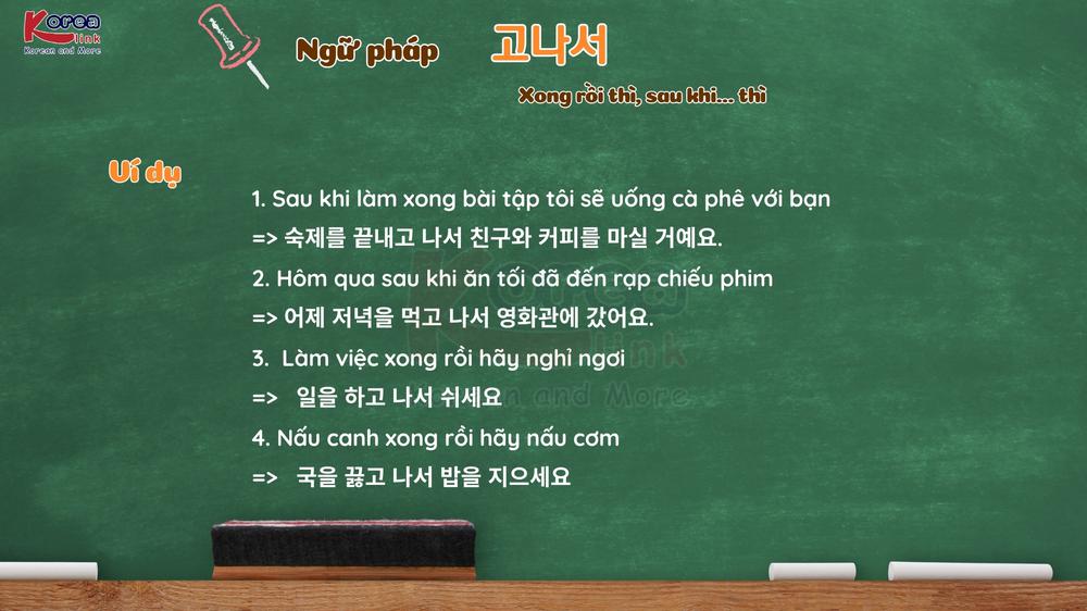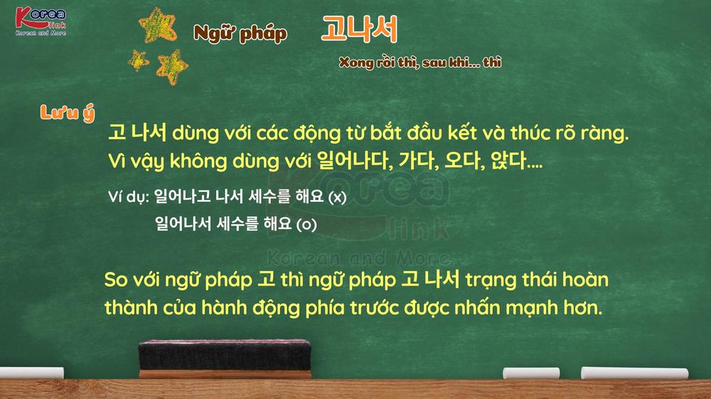 고 나서 là ngữ pháp dùng để diễn tả trình tự hành động, nhấn mạnh việc hoàn thành hành động trước rồi mới thực hiện hành động sau. Nắm vững cấu trúc này giúp người học diễn đạt mạch lạc, rõ ràng và tự nhiên như người Hàn, đặc biệt quan trọng trong giao tiếp hàng ngày, TOPIK và EPS-TOPIK.
