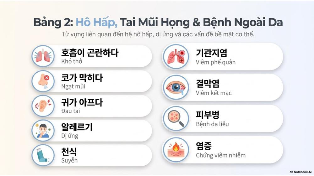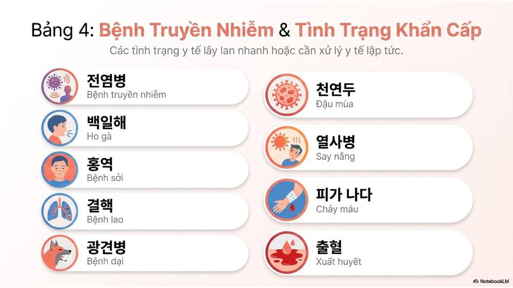 Qua bài học hôm nay, chúng ta đã biết cách gọi tên các triệu chứng như đau đầu, đau bụng, ho, sốt, và một số bệnh phổ biến. Việc sử dụng chính xác từ vựng này sẽ giúp bạn mô tả rõ ràng tình trạng sức khỏe khi giao tiếp bằng tiếng Hàn. Hãy ôn tập lại thường xuyên và luyện nói qua các mẫu câu đơn giản để ghi nhớ lâu hơn.