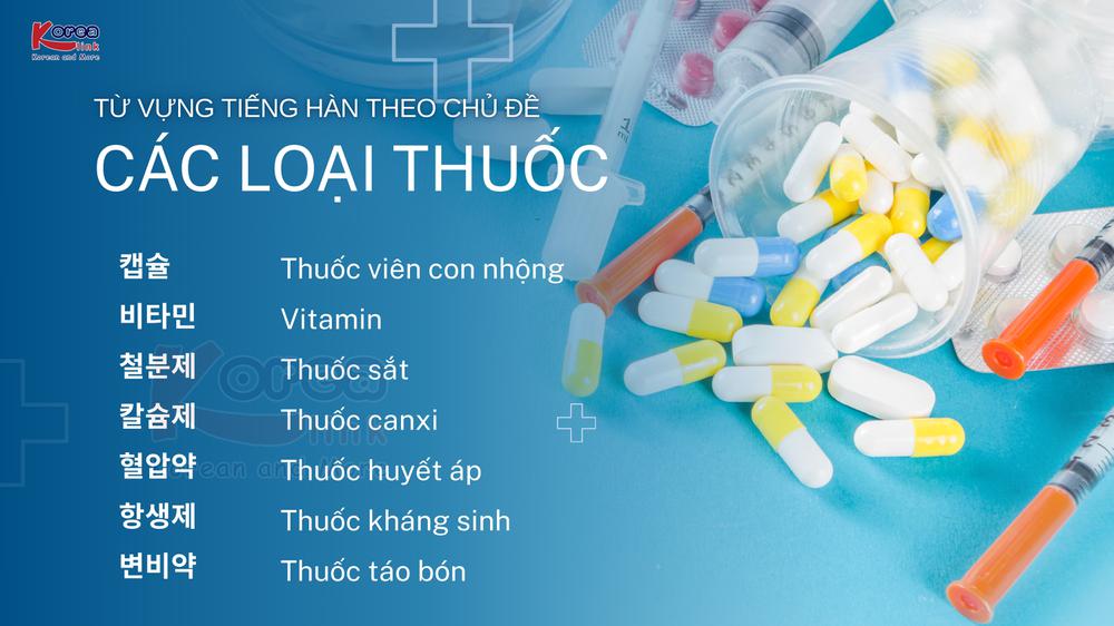 Hôm nay chúng ta sẽ tìm hiểu các loại thuốc và cách gọi tên chúng bằng tiếng Hàn. Đây là chủ đề thiết thực, giúp bạn biết cách diễn đạt khi cần hỗ trợ ở nhà thuốc hoặc khi đọc hướng dẫn sử dụng. Hãy chú ý phân biệt thuốc uống, thuốc bôi và thuốc dán để dùng từ chính xác.