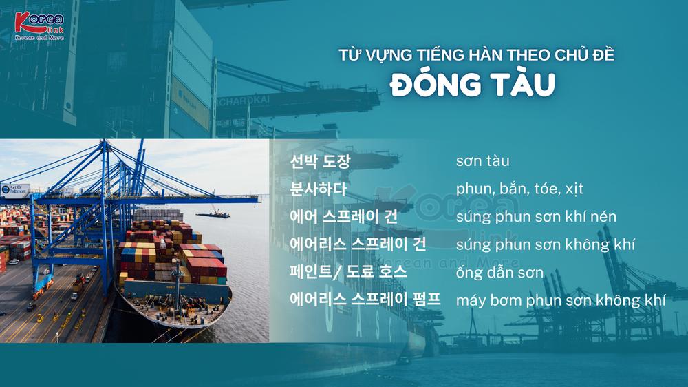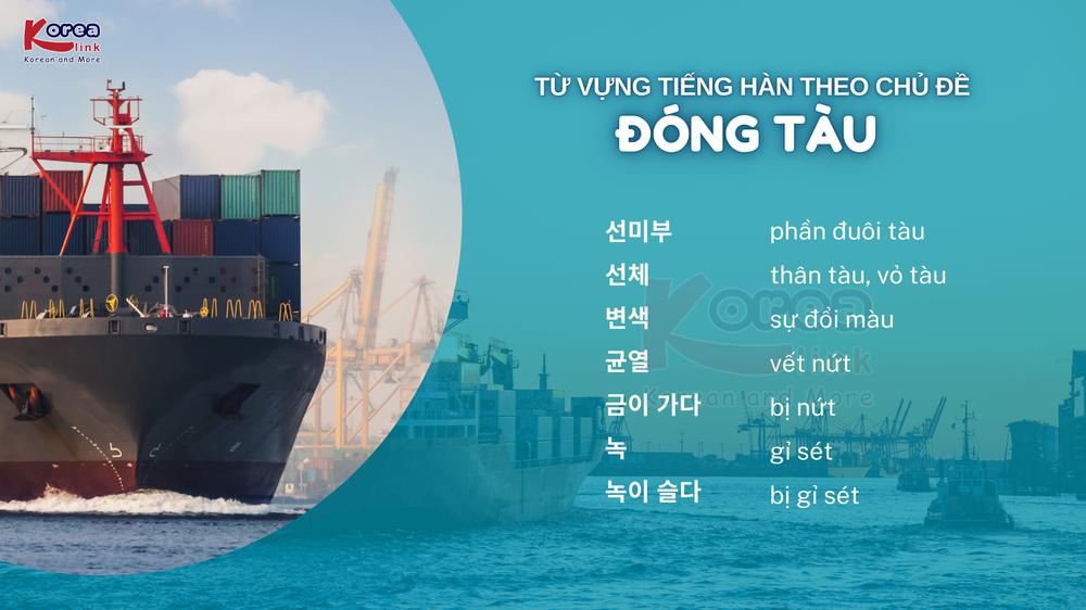 Chào các bạn, với những bạn học theo chương trình EPS thì các bạn biết rằng Hàn Quốc mới mở rộng thêm ngành Đóng Tàu cho chúng ta có cơ hội việc làm nữa. Vậy nên ở bài viết tuần này mời bạn đọc cùng Trung Tâm Tiếng Hàn Korea Link tìm hiểu từ vựng về Ngành Đóng Tàu trong tiếng Hàn nhé!
