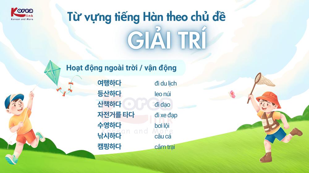 Giải trí là một phần quan trọng giúp cân bằng cuộc sống sau những giờ học và làm việc. Bài viết này sẽ giới thiệu các từ vựng tiếng Hàn phổ biến liên quan đến các hoạt động giải trí như xem phim, nghe nhạc, thể thao, du lịch… Đây là chủ đề quen thuộc trong giao tiếp và rất hữu ích khi luyện thi EPS TOPIK.