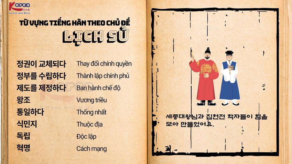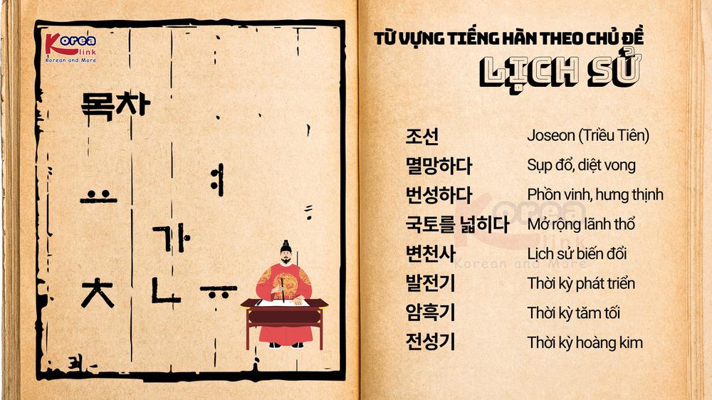 Từ vựng tiếng Hàn về lịch sử là một chủ đề thú vị mà bạn không thể bỏ qua, đặc biệt là đối với những ai yêu thích sự tìm tòi, khám phá. Bạn có tò mò muốn biết lịch sử Hàn Quốc đã trải qua những triều đại nào không? Cùng trung tâm Korealink tìm hiểu về từ vựng lịch sử tiếng Hàn là gì, bổ sung vốn từ vựng liên quan đến chủ đề lịch sử nhé!