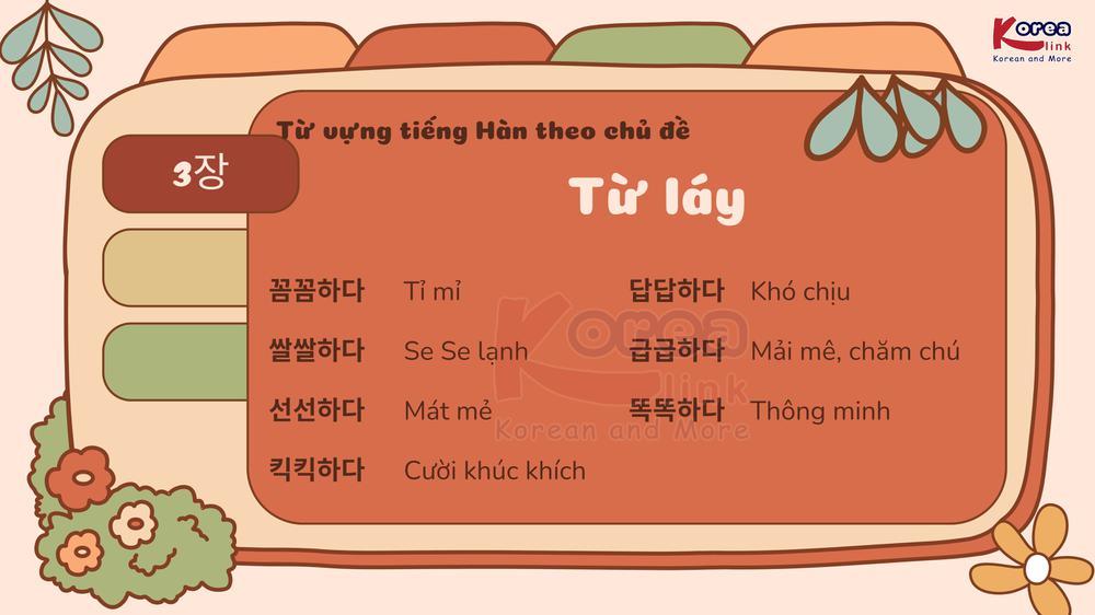 Tiếng Hàn có rất nhiều từ láy, trong đó phổ biến là từ tượng thanh (mô phỏng âm thanh) và từ tượng tượng hình (mô tả hình ảnh hoặc trạng thái). Ngày hôm nay hãy cùng tìm hiểu một số từ láy trong tiếng Hàn nhé!