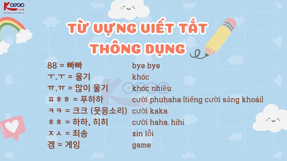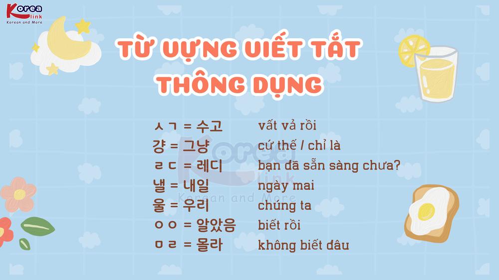 Chắc hẳn các bạn cũng rất tò mò trong tiếng Hàn có những từ viết tắt là gì? Ở bài viết tuần này mời bạn đọc cùng Korea Link tìm hiểu các từ vựng viết tắt mà người Hàn thường dùng nhất nhé!