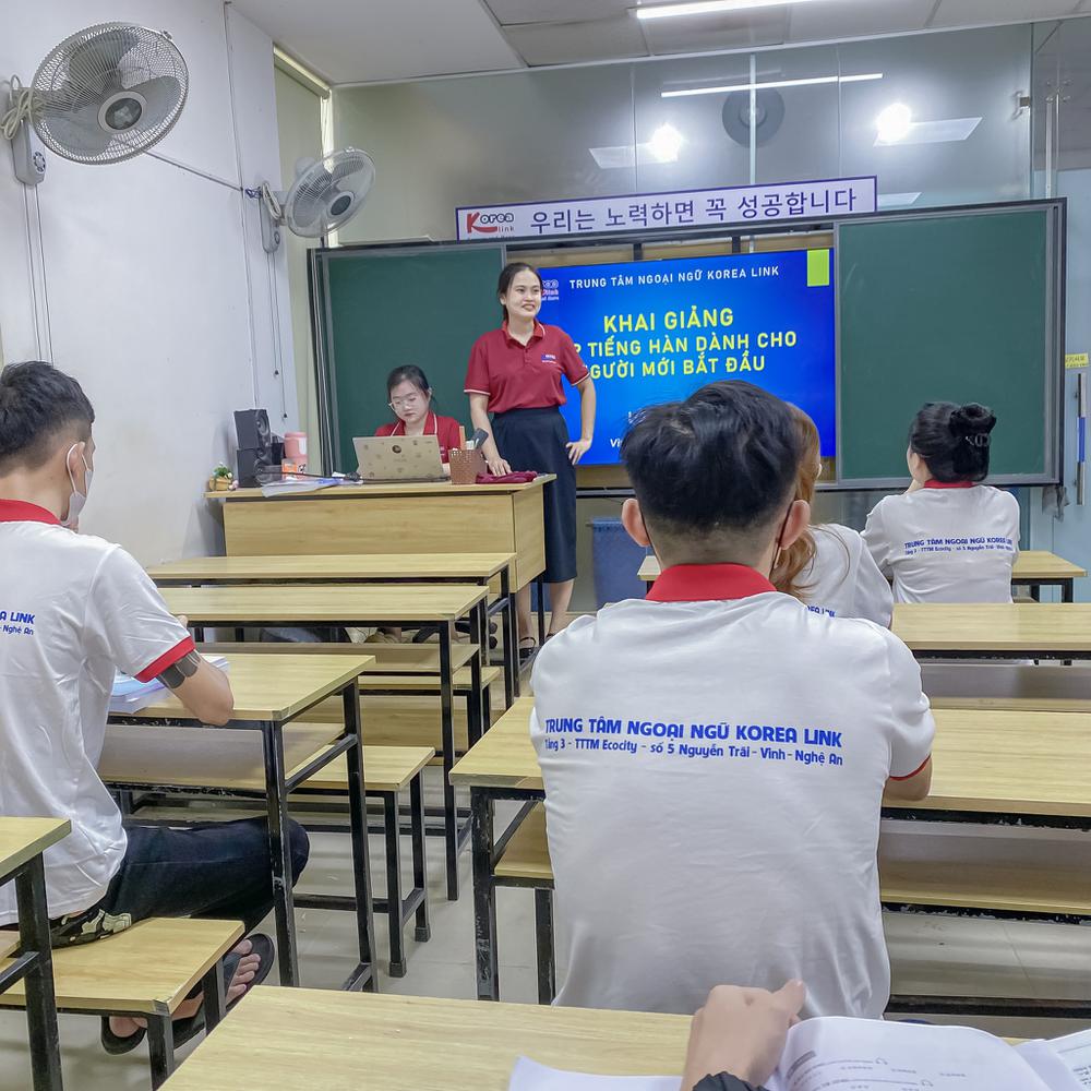 Không khí hân hoan, rộn ràng tràn ngập tại Trung tâm Ngoại ngữ Korea Link trong buổi khai giảng lớp tiếng Hàn dành cho người mới vừa qua. Sự kiện đánh dấu khởi đầu cho hành trình học tiếng Hàn đầy hứng khởi của đông đảo học viên ở mọi lứa tuổi – từ học sinh, sinh viên, người đi làm cho đến những bạn đang chuẩn bị đi Hàn Quốc theo chương trình EPS, du học hoặc xuất khẩu lao động .