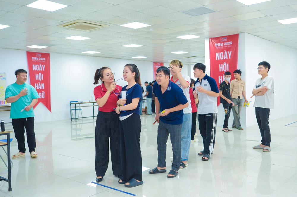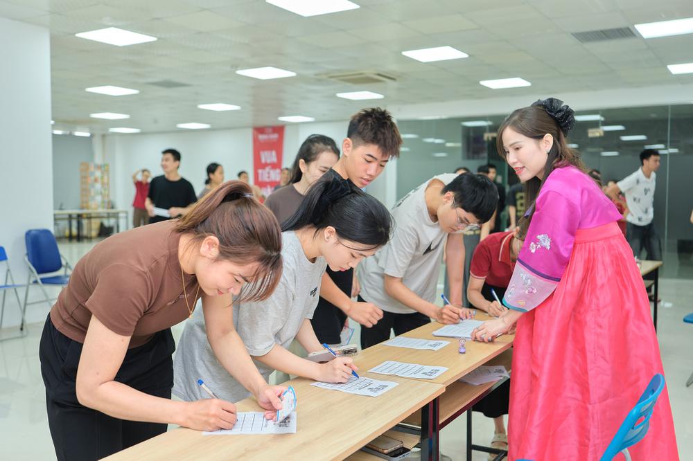 Các học viên thi nhau thể hiện khả năng phản xạ tiếng Hàn, vừa học vừa vui trong những phút giây đầy tiếng cười.