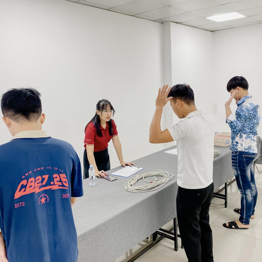 Sáng ngày 1/11 vừa qua, tại Trung tâm Ngoại ngữ Korea Link , buổi thi thử vòng 2 ngành ngư nghiệp đã diễn ra trong không khí tập trung và nghiêm túc. Tất cả thí sinh đều được hướng dẫn kỹ lưỡng quy trình thi, từ khâu làm thủ tục, kiểm tra thông tin đến phần thi tay nghề – giúp họ làm quen với môi trường thi thực tế nhất trước ngày bước vào kỳ thi chính thức.